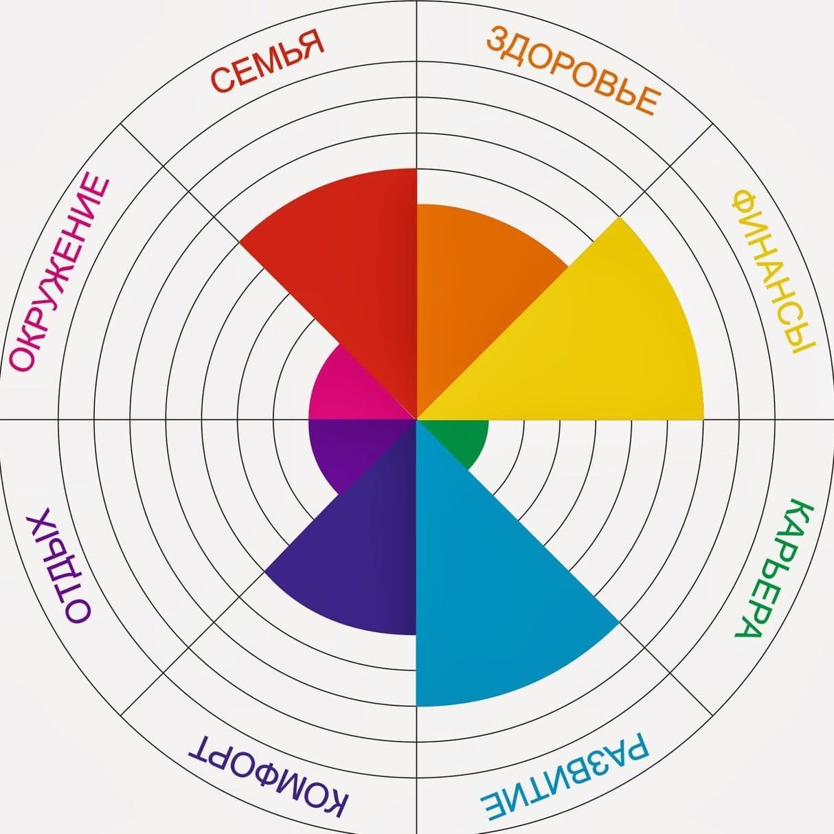 «Колесо жизненного баланса» - это инструмент, с помощью которого удобно наглядно представить уровень развития каждой жизненной сферы и проанализировать ситуацию в целом.