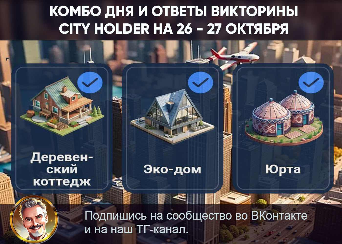 🌇 КОМБО ДНЯ И ОТВЕТЫ ВИКТОРИНЫ CITY HOLDER НА 26 - 27 ОКТЯБРЯ 2025